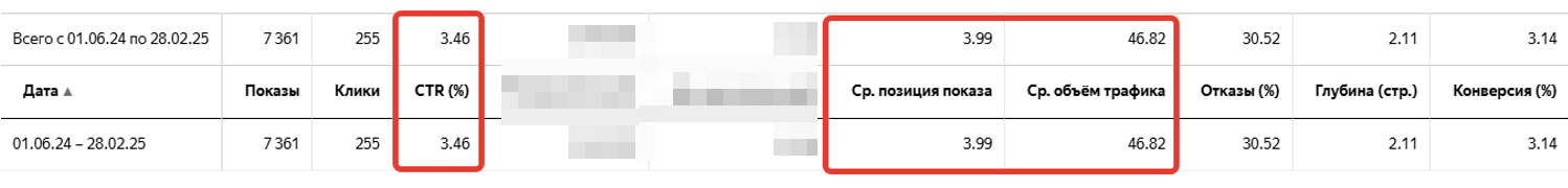 В рамках аудита отдельно анализируется эффективность каждой кампании в Директе (показы, охват, позиции, CPC, CPA, CTR и т.д.). В этом кейсе мы приводим пример одной из кампаний без раскрытия полной статистики.