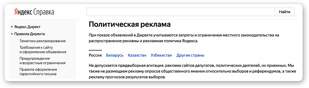 Правила Яндекс.Директа прямо запрещают политическую рекламу