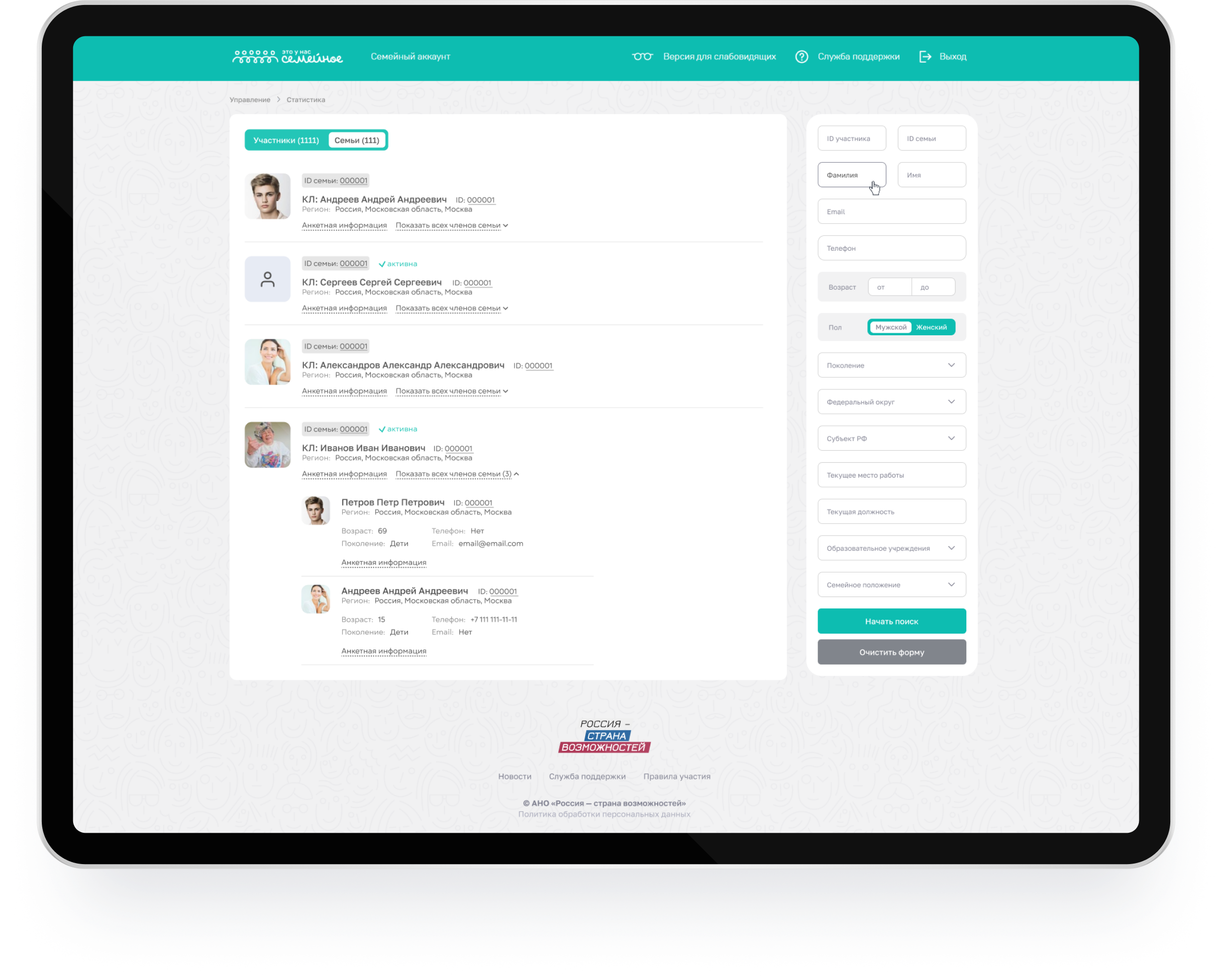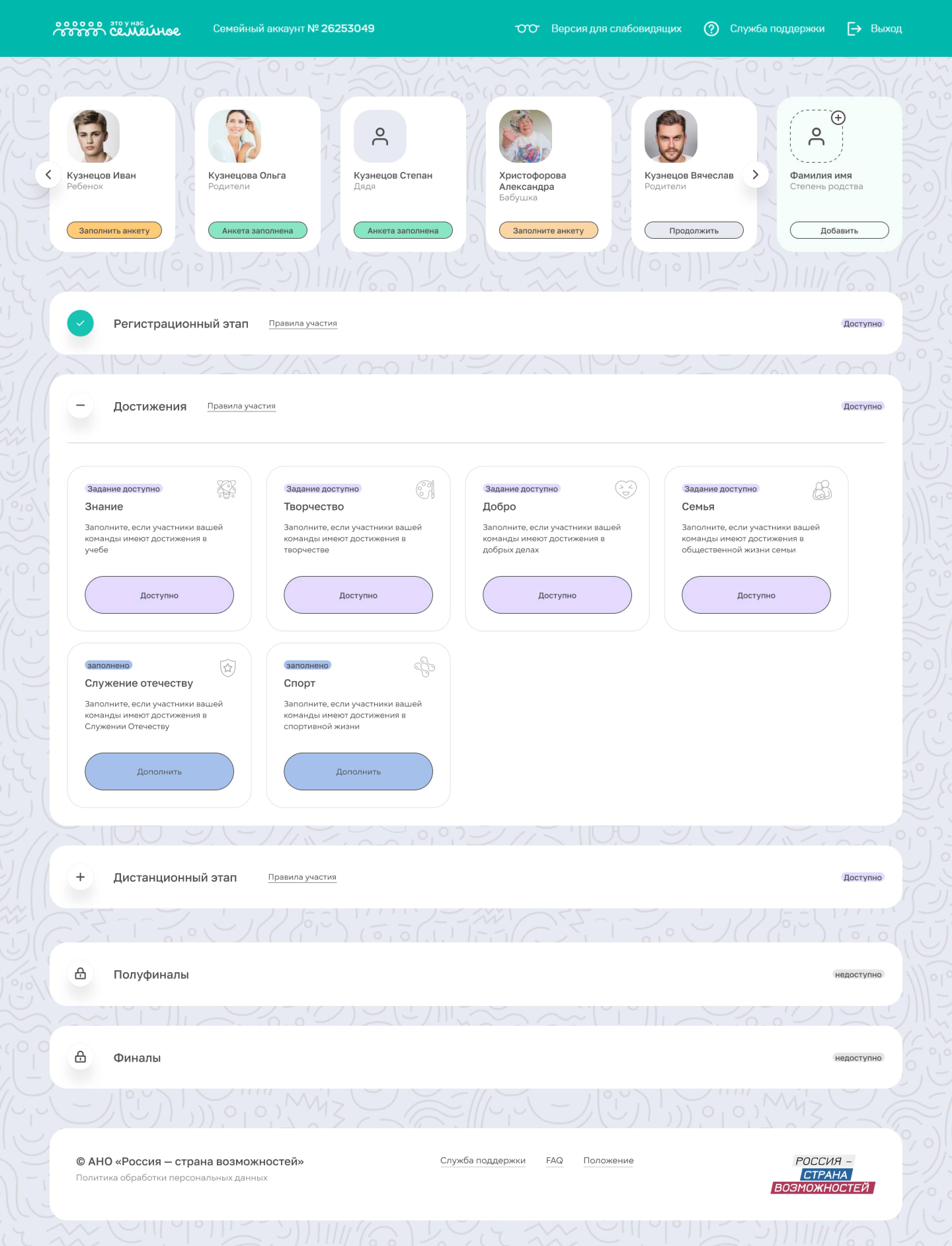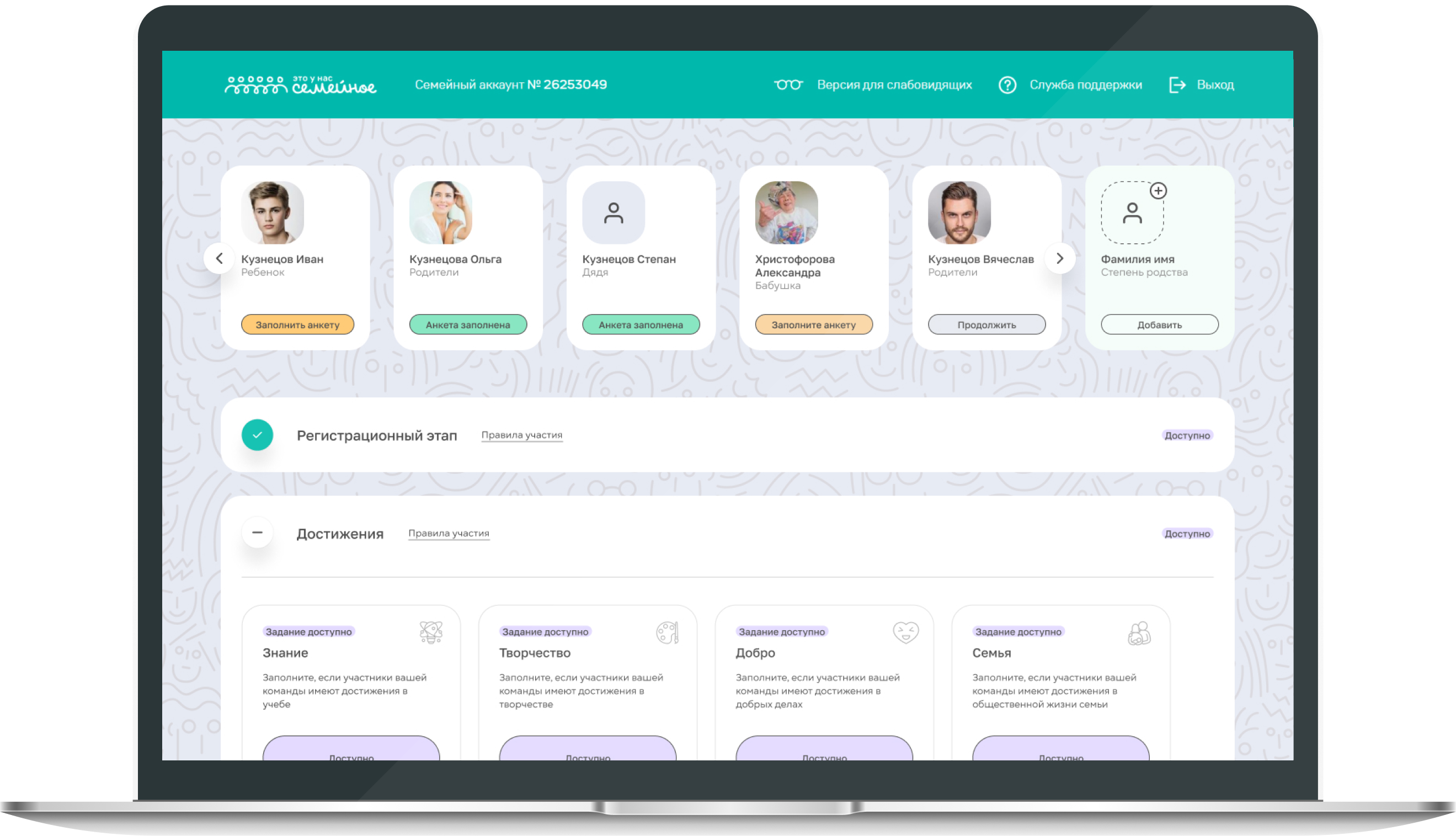 Личный кабинет должен соответствовать не одному аккаунту, а объединять несколько аккаунтов участников семейной команды, что требует нестандартных архитектурных решений (поддержки многопользовательских личных кабинетов на данный момент нет ни в одной существующей CMS).