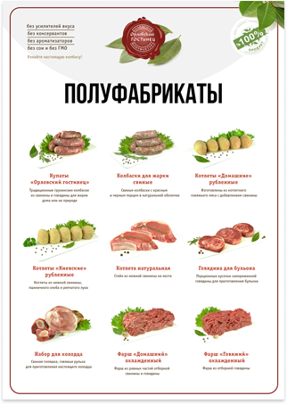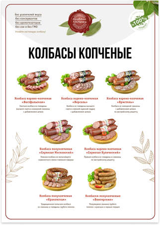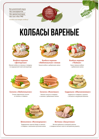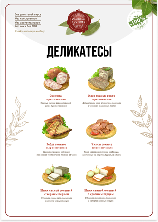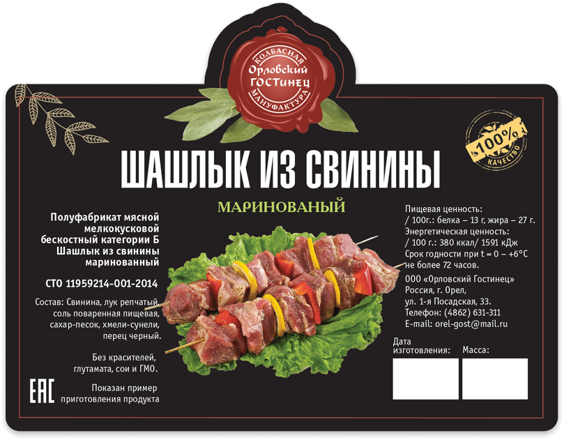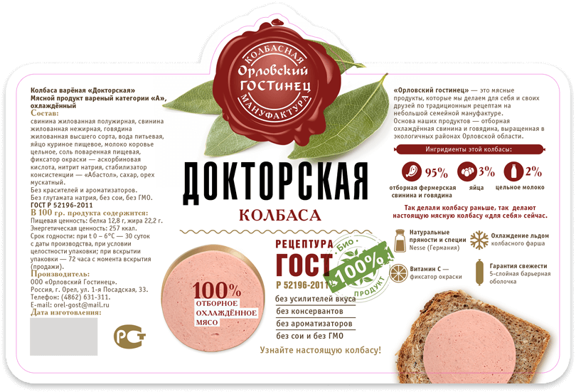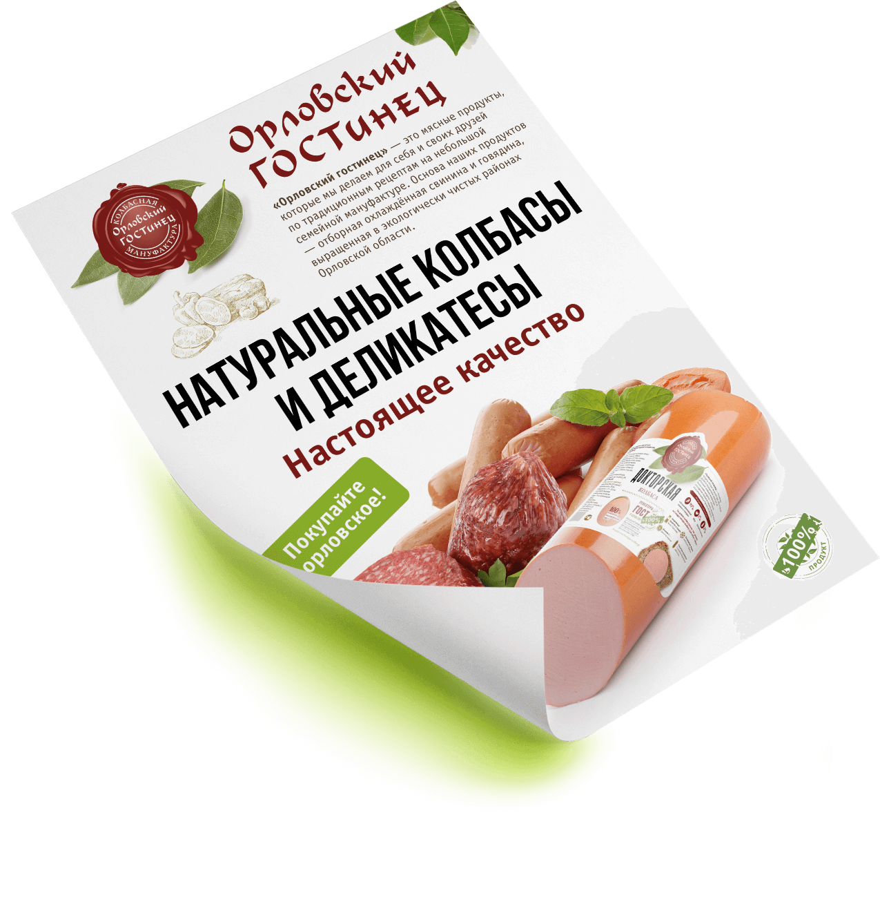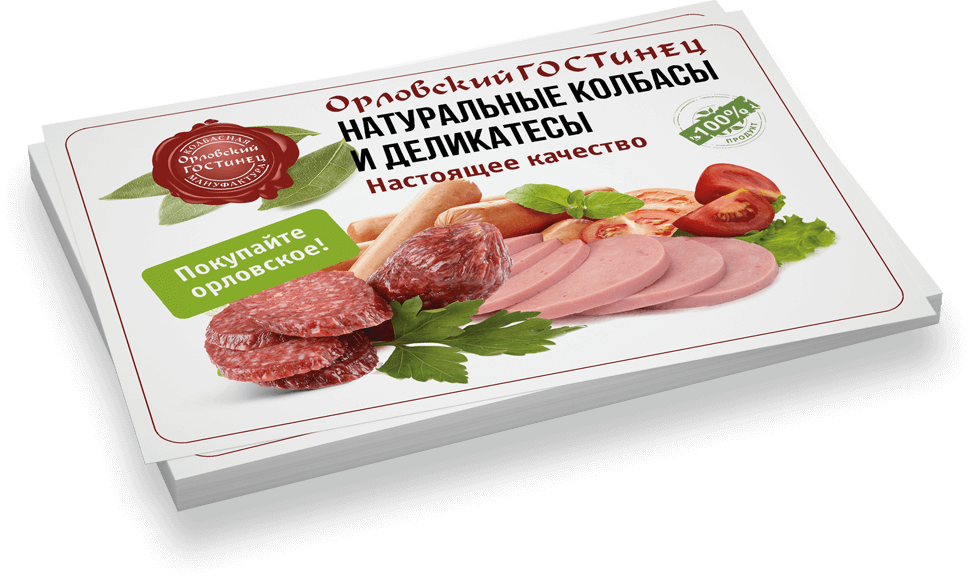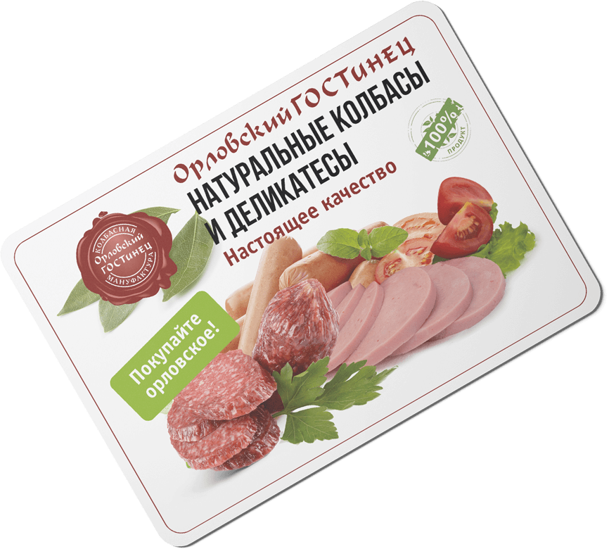 Наше многолетнее сотрудничество с мясной мануфактурой «Орловский ГОСТинец» началось с разработки логотипа. для производства колбасных изделий и деликатесов компания использует исключительно натуральные ингредиенты, свежее мясо от фермерских хозяйств, в составе продукции нет ГМО, красителей, ароматизаторов, сои, глутамата натрия. Клиент поставил задачу отразить это в логотипе.