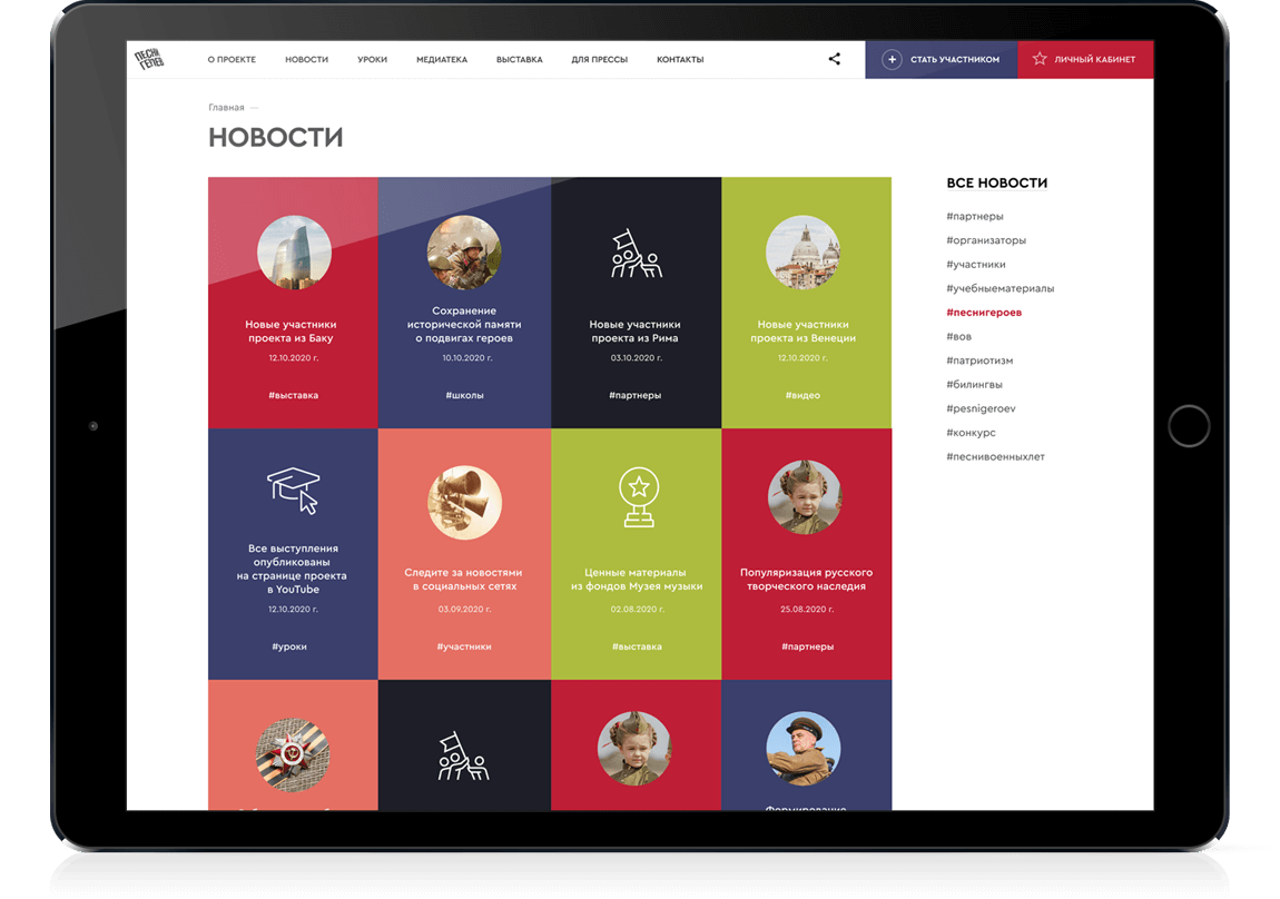 Организация материала. Мы разделили основной контент на три блока в соответствии с целями проекта: