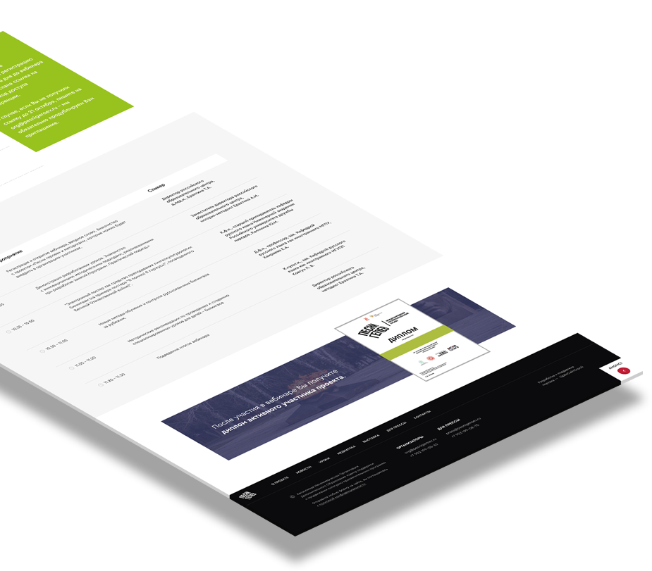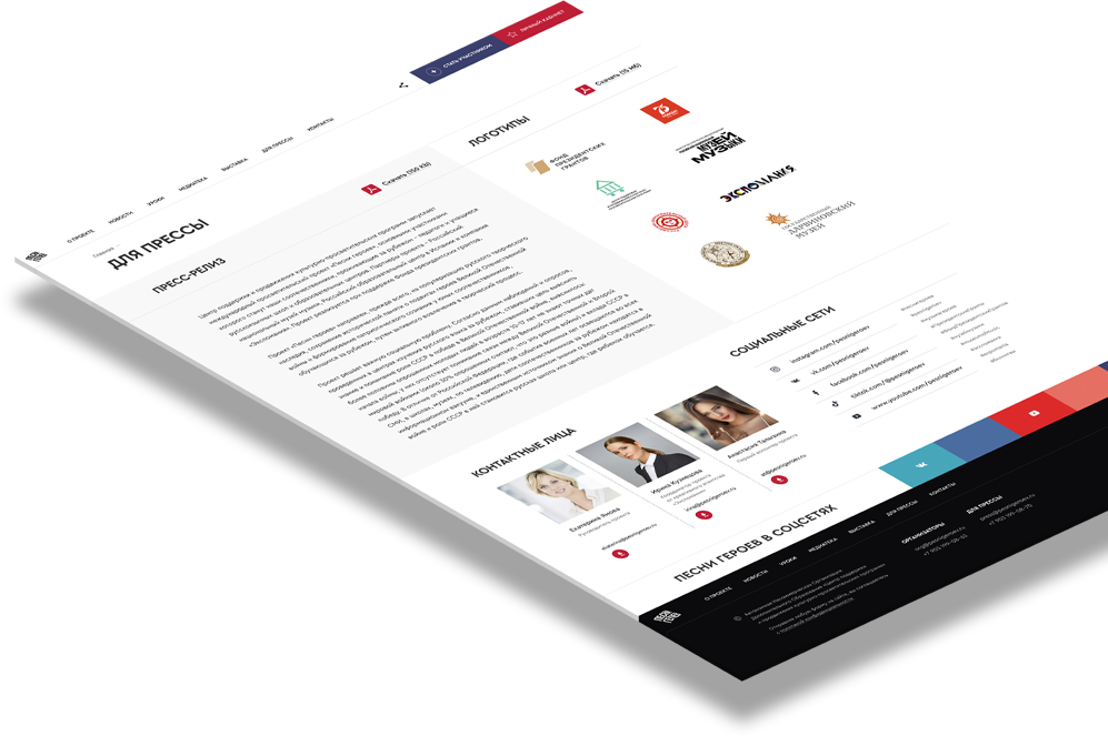Визуальное оформление. То, как выглядит сайт, влияет на отношение к самому проекту. Чтобы сайт был привлекательным, мы сделали его в современном «плоском» дизайне и использовали для каждого информационного блока свой цвет. Так мы добавили яркости и визуально выделили смысловые части.
