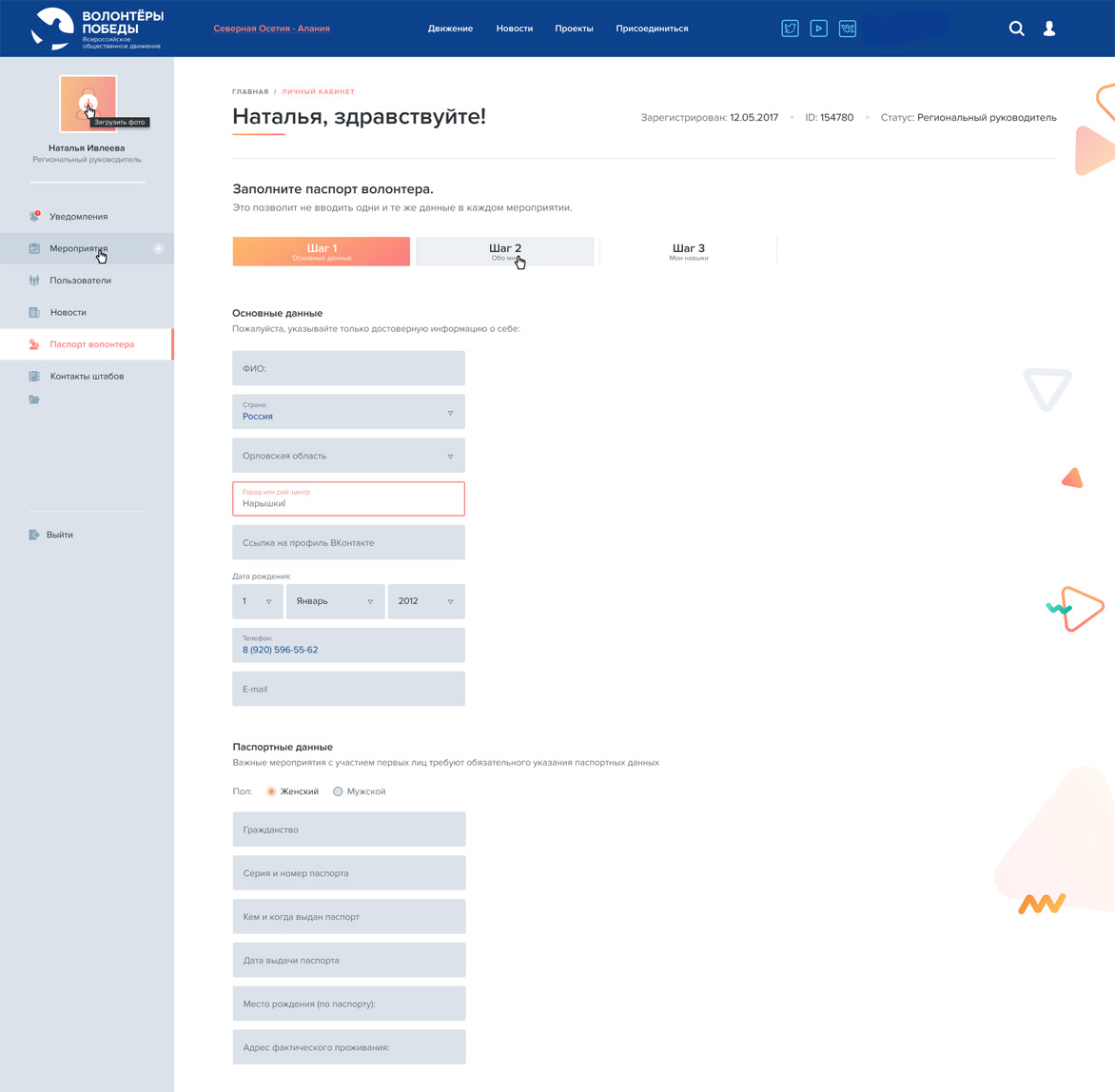 — Авторизация через ВК с передачей данных из профиля в паспорт волонтёра