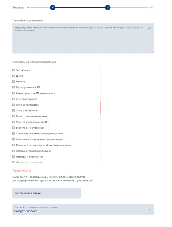 — Функция массового и выборочного приглашения на мероприятия по заданными параметрам пользователей