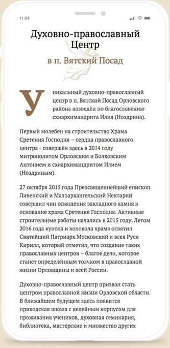 В 2017 году начал свою работу Духовно-православный центр «Вятский Посад». Мы разработали для него сайт, который поддерживаем и в настоящее время.